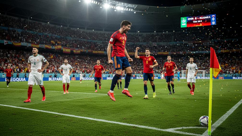 Spain’s impressive run of 29 consecutive competitive games unbeaten was maintained as Mikel Merino’s brace led them to a 4-0 victory over Bulgaria. With this win, Spain now sits at a perfect 12 points in World Cup qualifying, showcasing their strength and determination under coach Luis de le Fuente. Merino’s performance, along with the team’s overall dominance, highlights their status as a formidable force in international football.