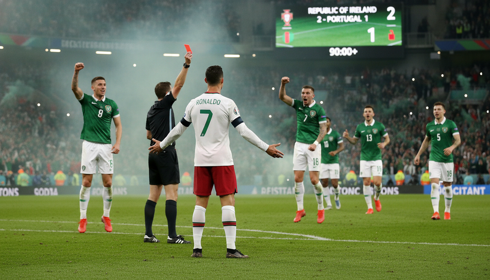 In a shocking turn of events, Cristiano Ronaldo’s hubris led to a red card that ultimately contributed to Portugal’s 2-0 defeat against an inspired Republic of Ireland side. The superstar’s self-proclaimed fame and larger-than-life persona were overshadowed by his on-field struggles, raising questions about his impact on the team’s World Cup qualifying campaign. Ronaldo’s frustration was palpable as he received a straight red card, potentially ruling him out of crucial upcoming matches. The Irish team’s resilience and determination were evident as they capitalized on Ronaldo’s absence, securing a memorable victory that ignited their World Cup dreams.