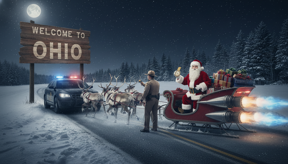 In a festive twist, Santa Claus finds himself on the wrong side of the law as a sheriff halts his rapid delivery mission in Ohio. This lighthearted encounter reminds us of the importance of upholding law and order, even during the holiday season, reflecting traditional values of responsibility and respect for authority.